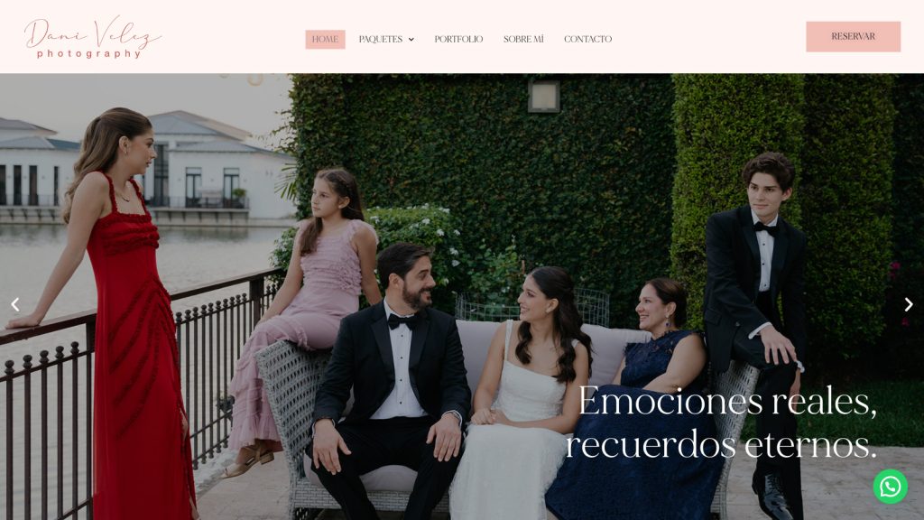 El sitio web de Daniela Vélez Fotografía ha sido diseñado para reflejar la esencia de su trabajo como fotógrafa especializada en matrimonios. La plataforma presenta una estética limpia y elegante, donde las imágenes son el centro de atención. Desde la portada, los visitantes pueden explorar fácilmente sus servicios, admirar su portafolio y obtener información clara sobre los paquetes ofrecidos. Además, la navegación intuitiva y el diseño responsivo aseguran una experiencia fluida tanto en dispositivos móviles como en pantallas de escritorio.