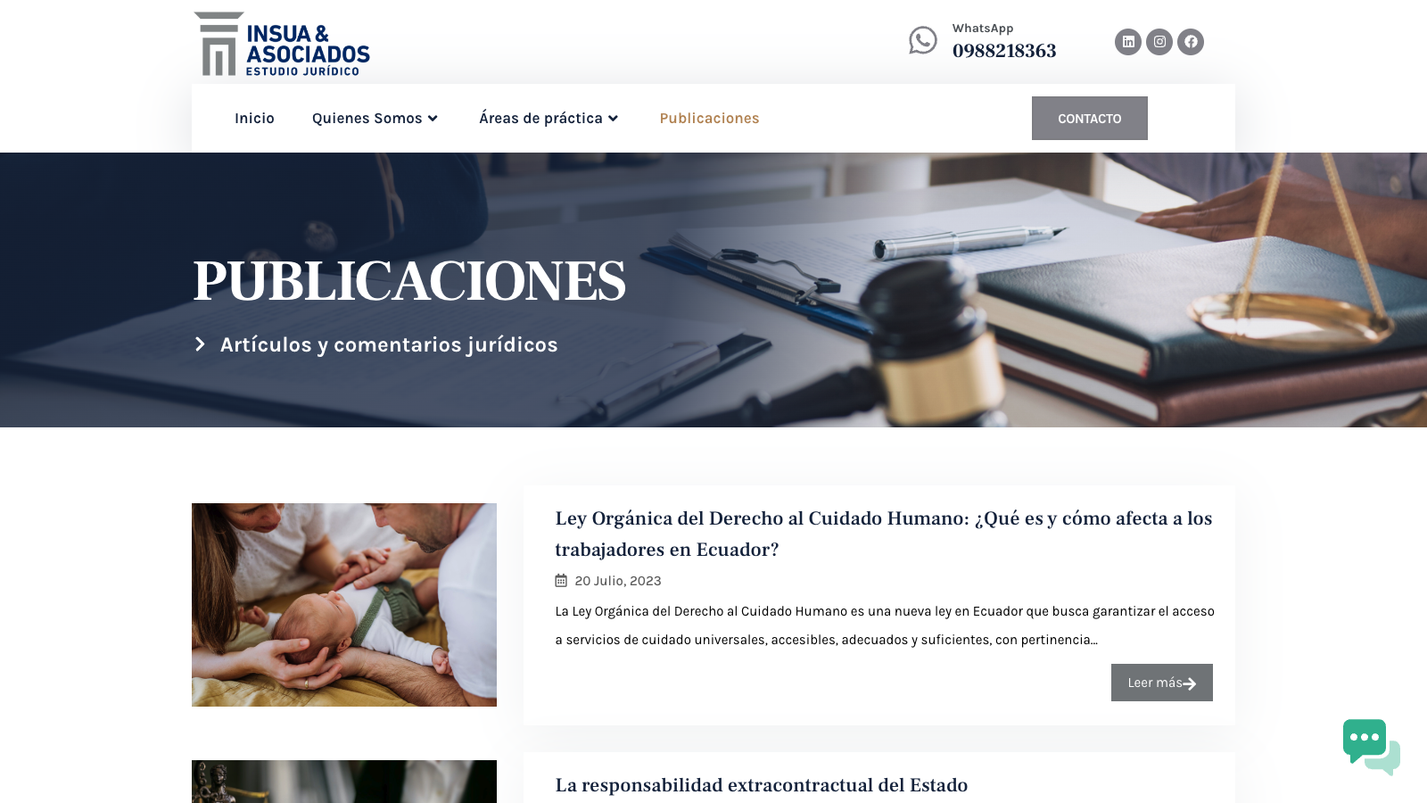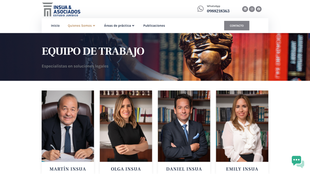 Desarrollo del sitio web institucional del Estudio Jurídico Insua & Asociados. Generación de estrategias, contenidos y piezas gráficas para las redes sociales de la empresa. Campañas de marketing digital para la institución: Meta Ads (Facebook, Instagram), Google Ads, E-Mail Marketing, Posicionamiento SEO Avanzado.
